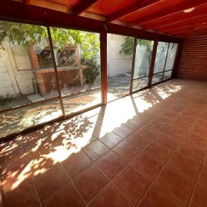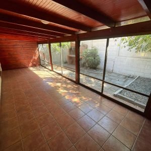 Terraza techada, cerrada, Jardin Con Parrilla, Arbol Frutal, lateral bodega que se comunica con antejardin.