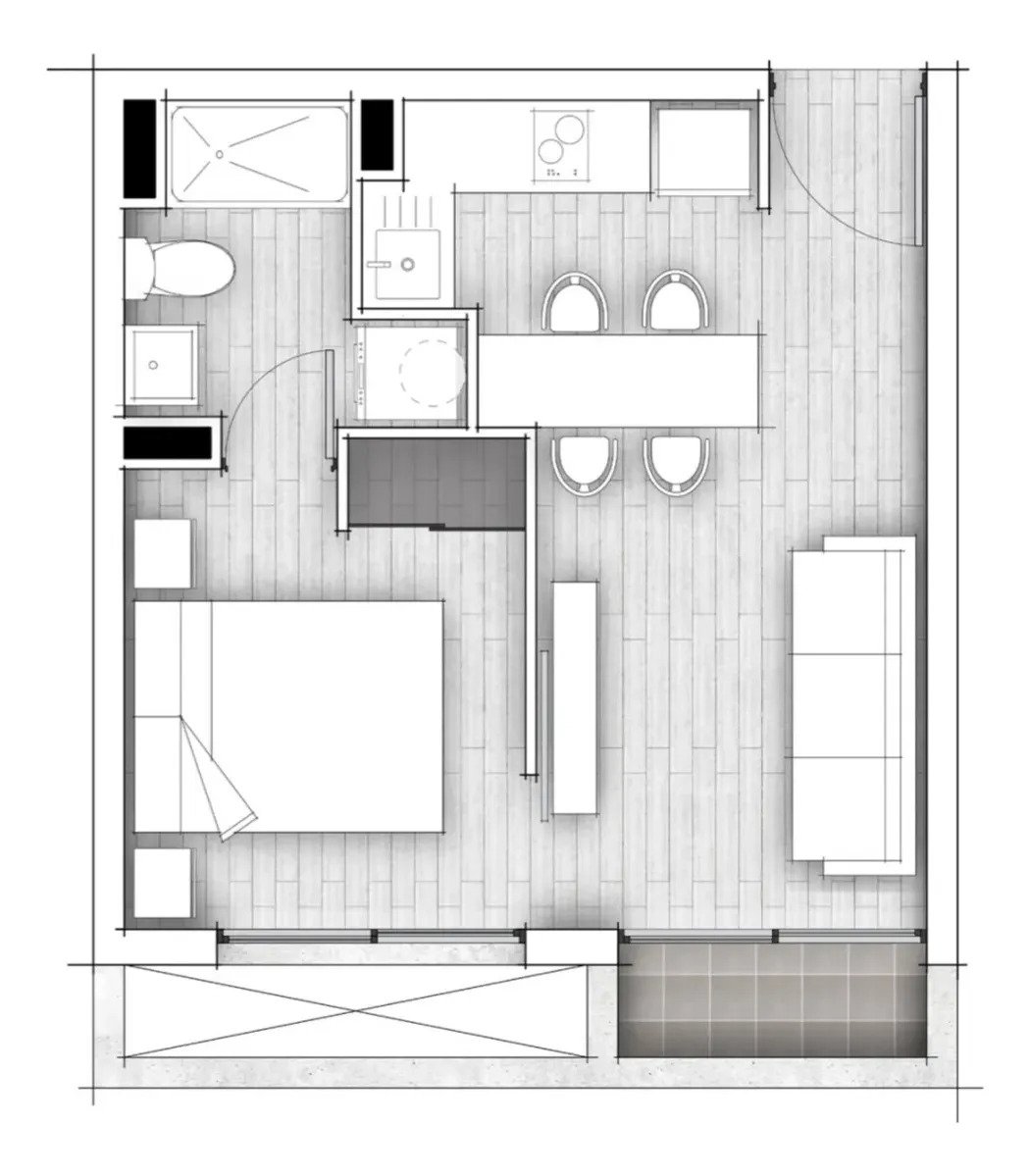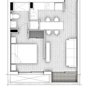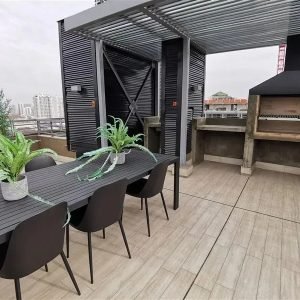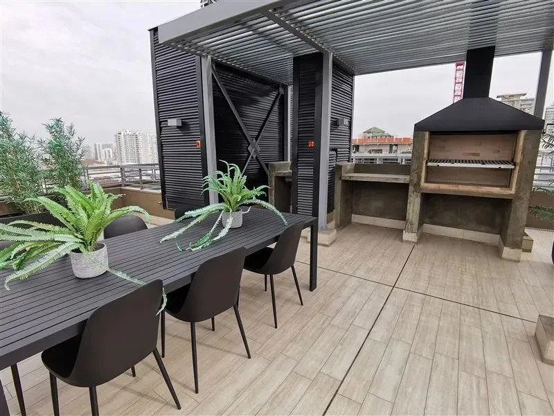 Departamento de un dormitorio de 32 m2 con closet y un baño, en exclusivo edificio de tan solo 9 pisos, cuenta con conexión a lavadora, cocina full equipada y amoblada, ventanas con termopanel, ubicado a pasos del parque Almagro.