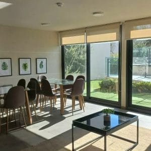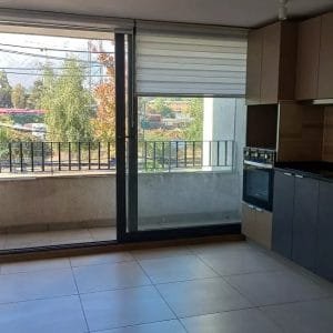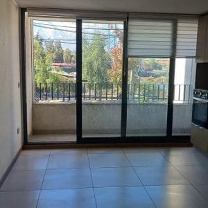 Living comedor con cocina integrada y salida a terraza con vista al oriente.
